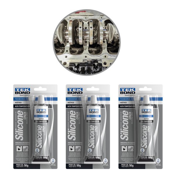 - O SILICONE ACÉTICO CINZA ALTA TEMPERATURA é um adesivo selante tixotrópico monocomponente, baixo módulo, anti-fungo e de cura acética. Sua cura ocorre em temperatura ambiente e na exposição à umidade do ar. Possui excelente a óleo de motor e óleos lubrificantes, pode ser aplicado em tampa de válvulas, caixas de câmbio, tampas de diferencial, etc. Ideal para ser utilizado como um substituto de juntas de retentores, de papel e feltro.