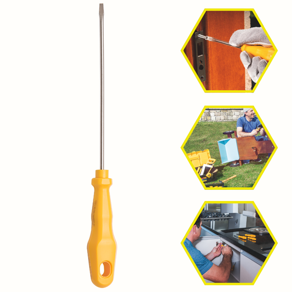 - Aperto e soltura de parafusos de fenda: Perfeita para uso em parafusos com fenda reta, comumente encontrados em equipamentos eletrônicos, móveis e instalações elétricas.